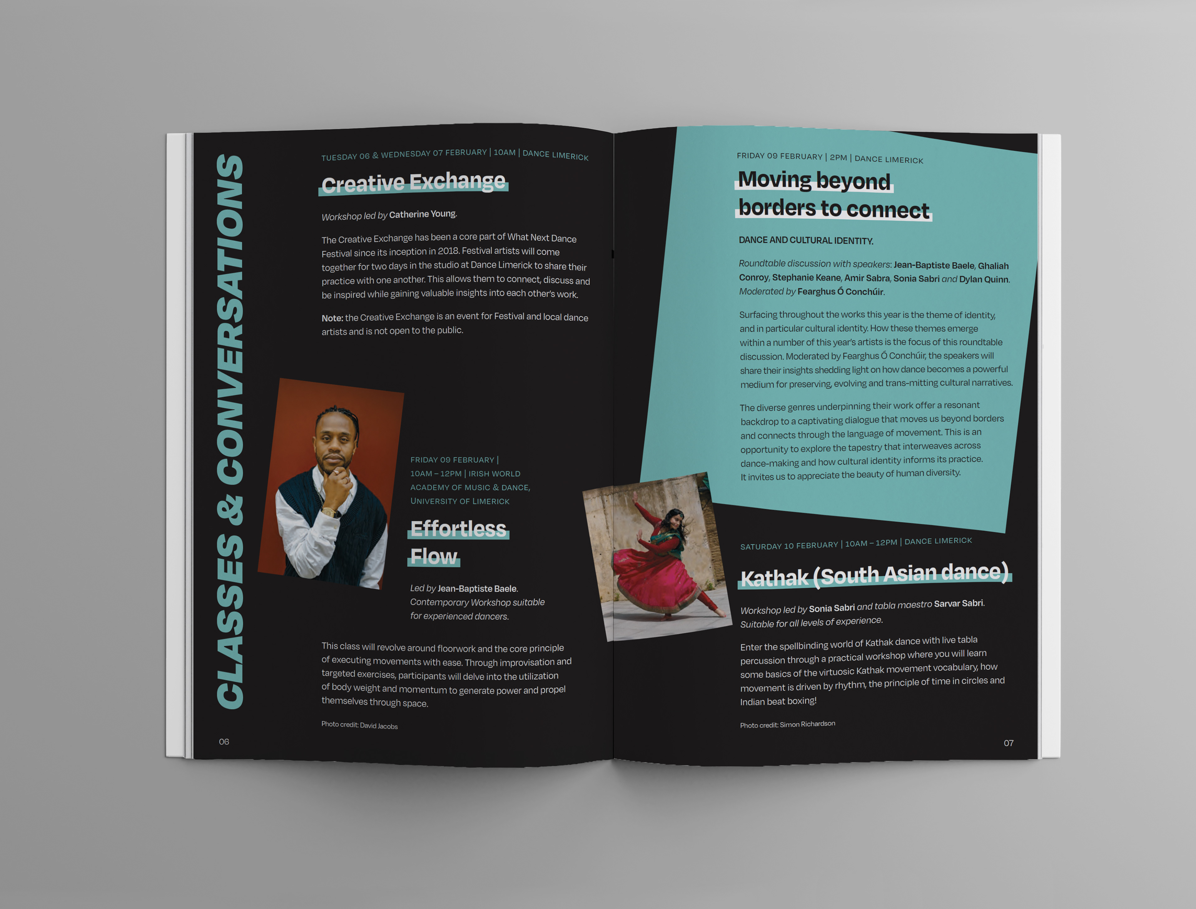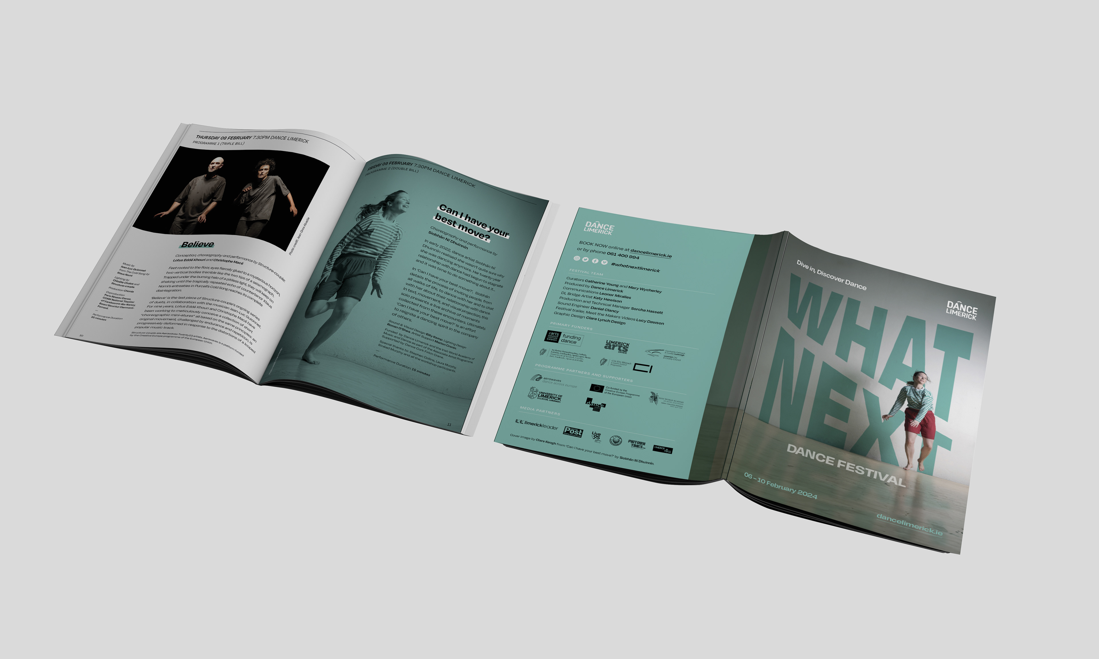 Identity refresh, animated and printed posters and programme designed for What Next Dance Festival.